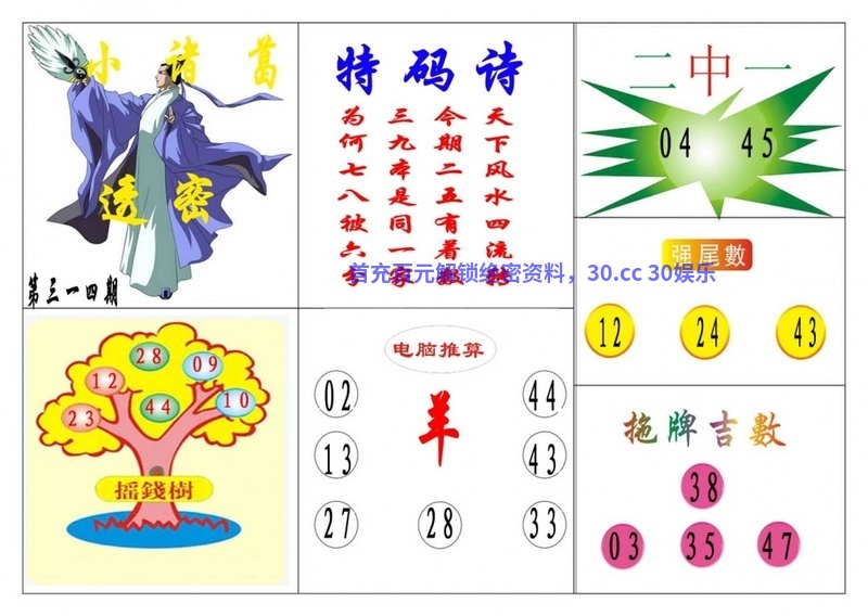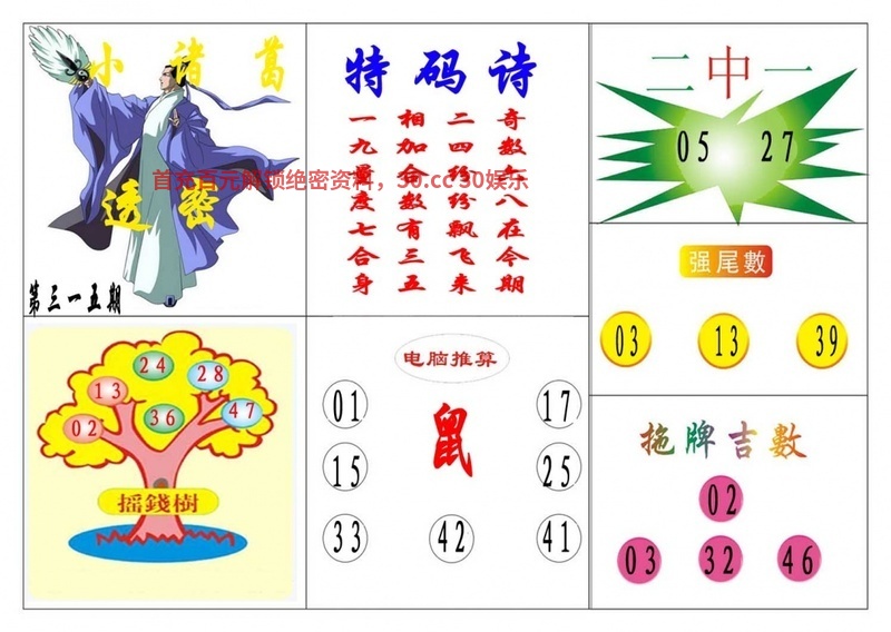 318期:摇钱树网 【二肖四码】 已公开